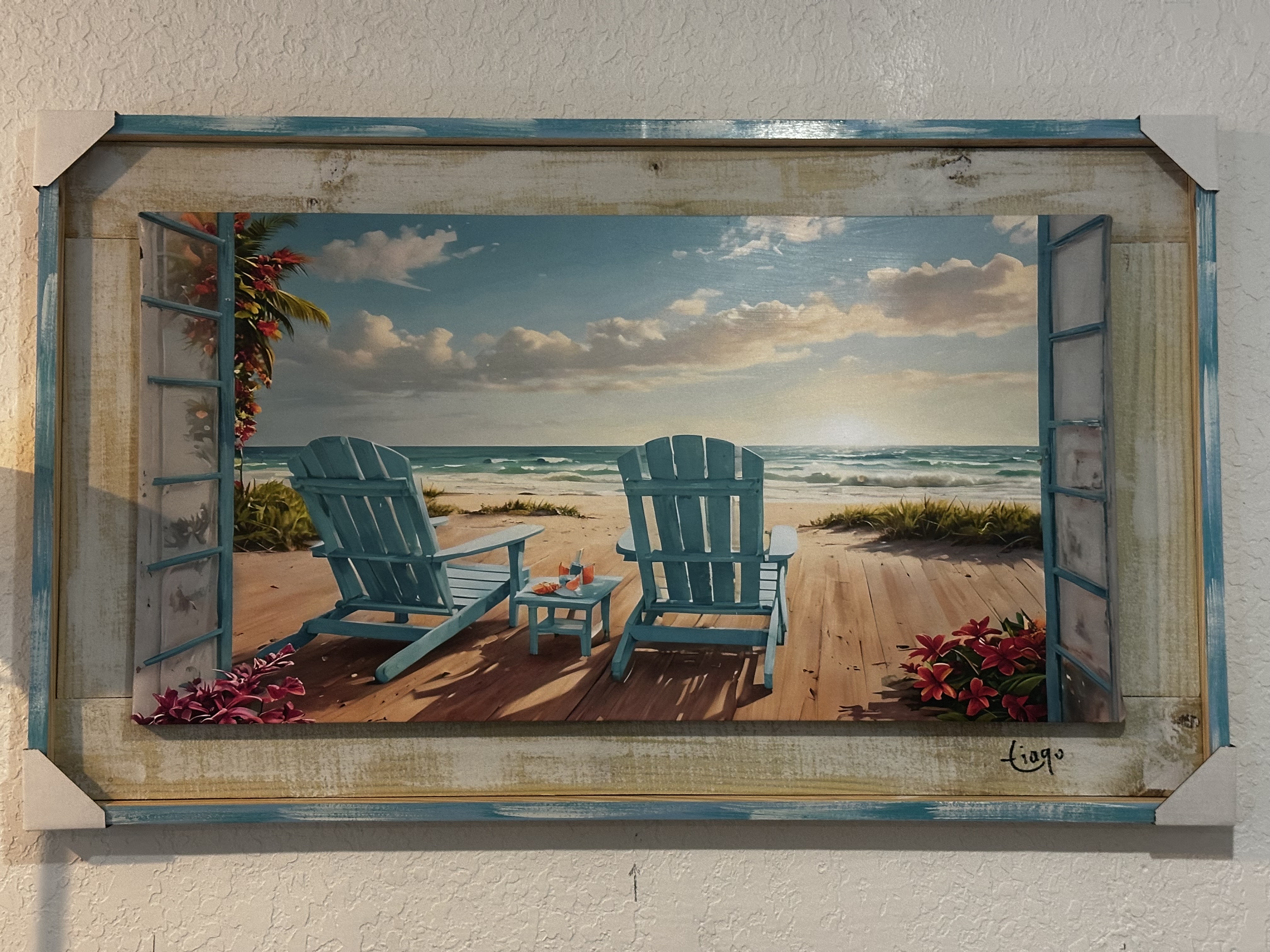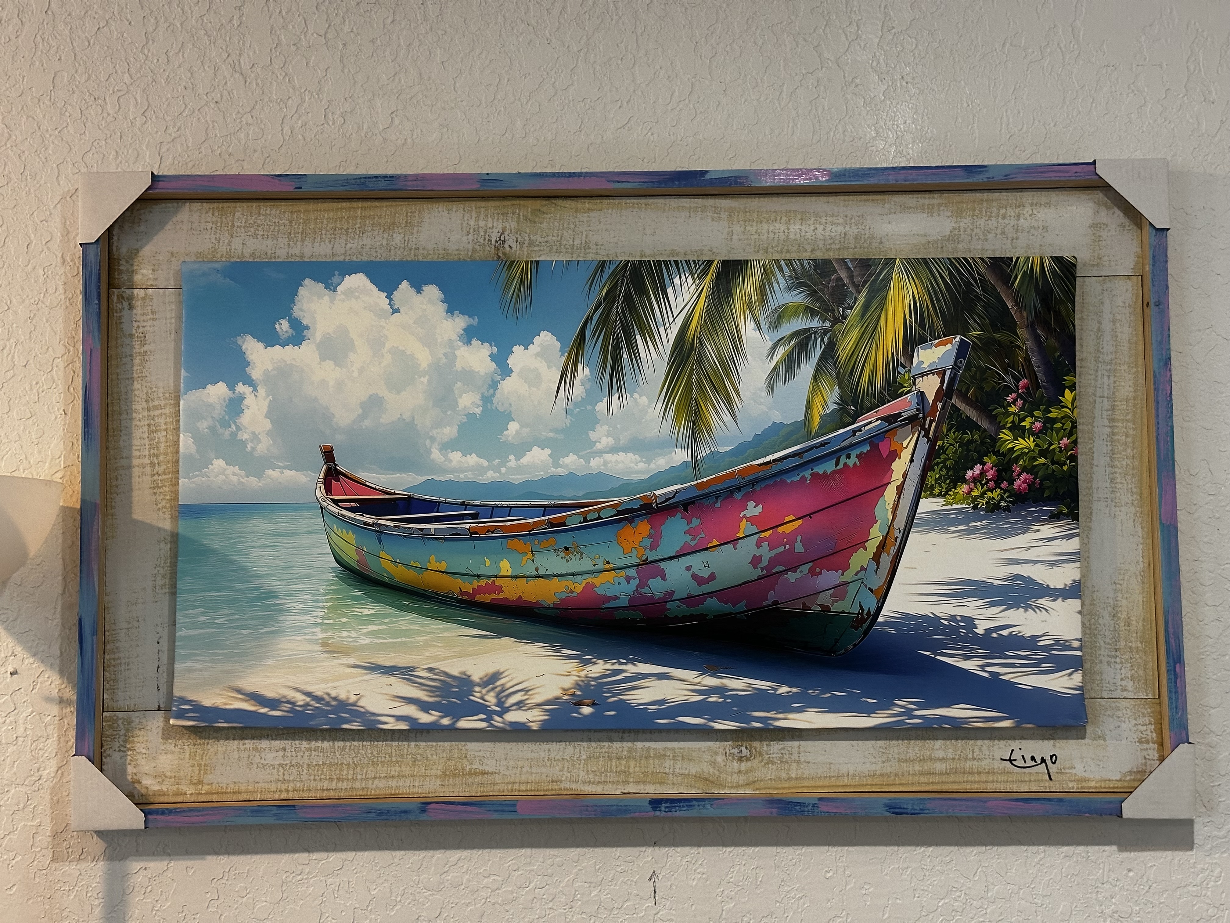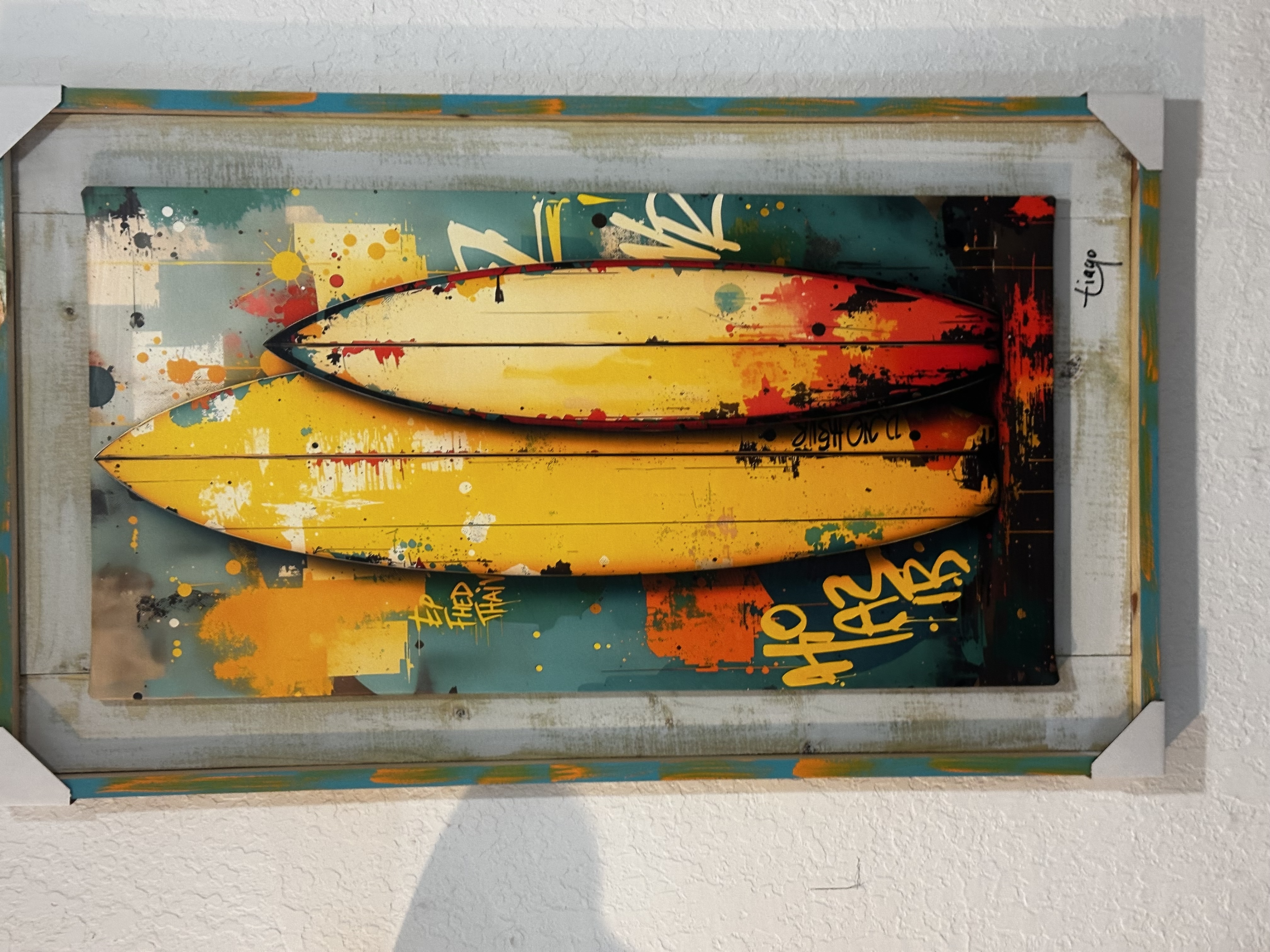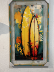 ACRYLIC ART ON CANVAS OVER DISTRESSED WOOD