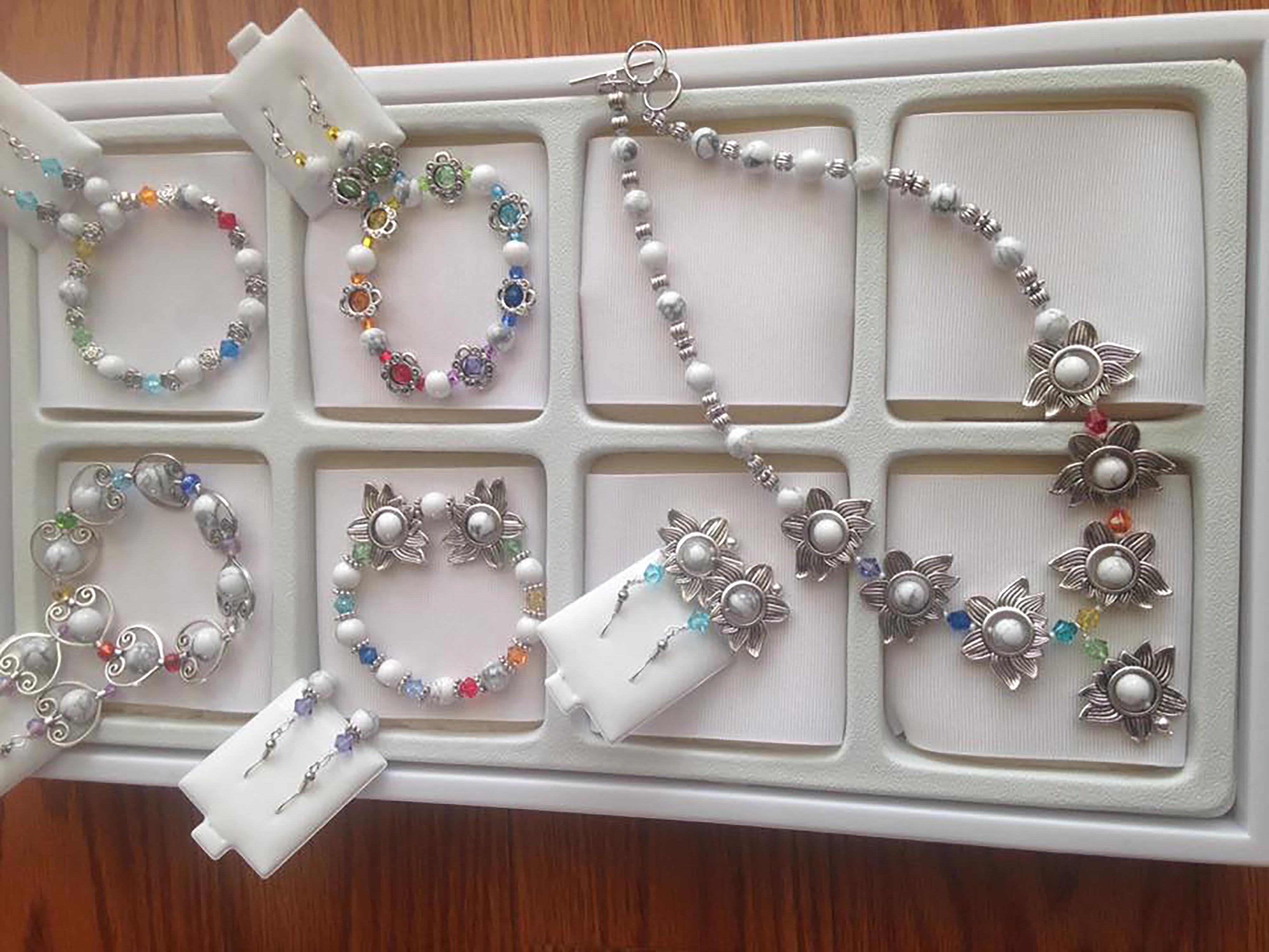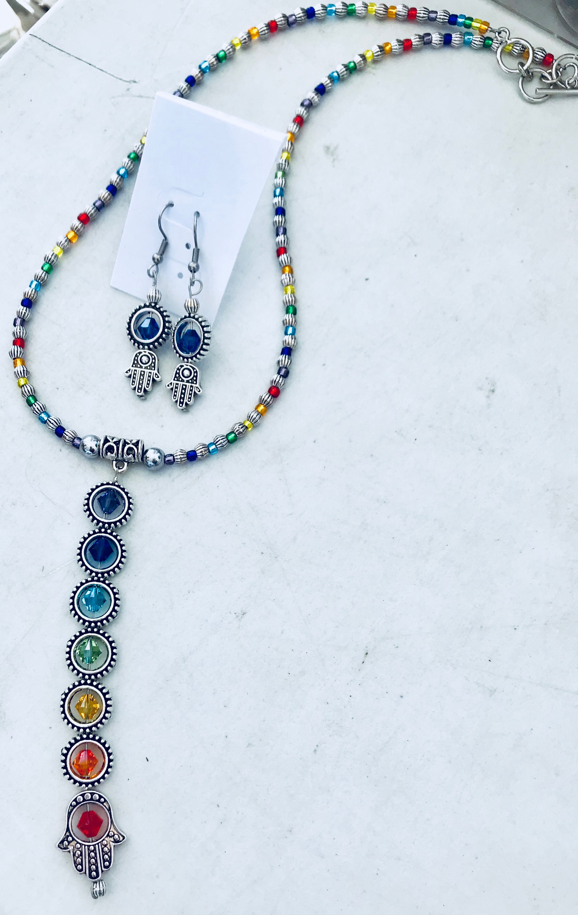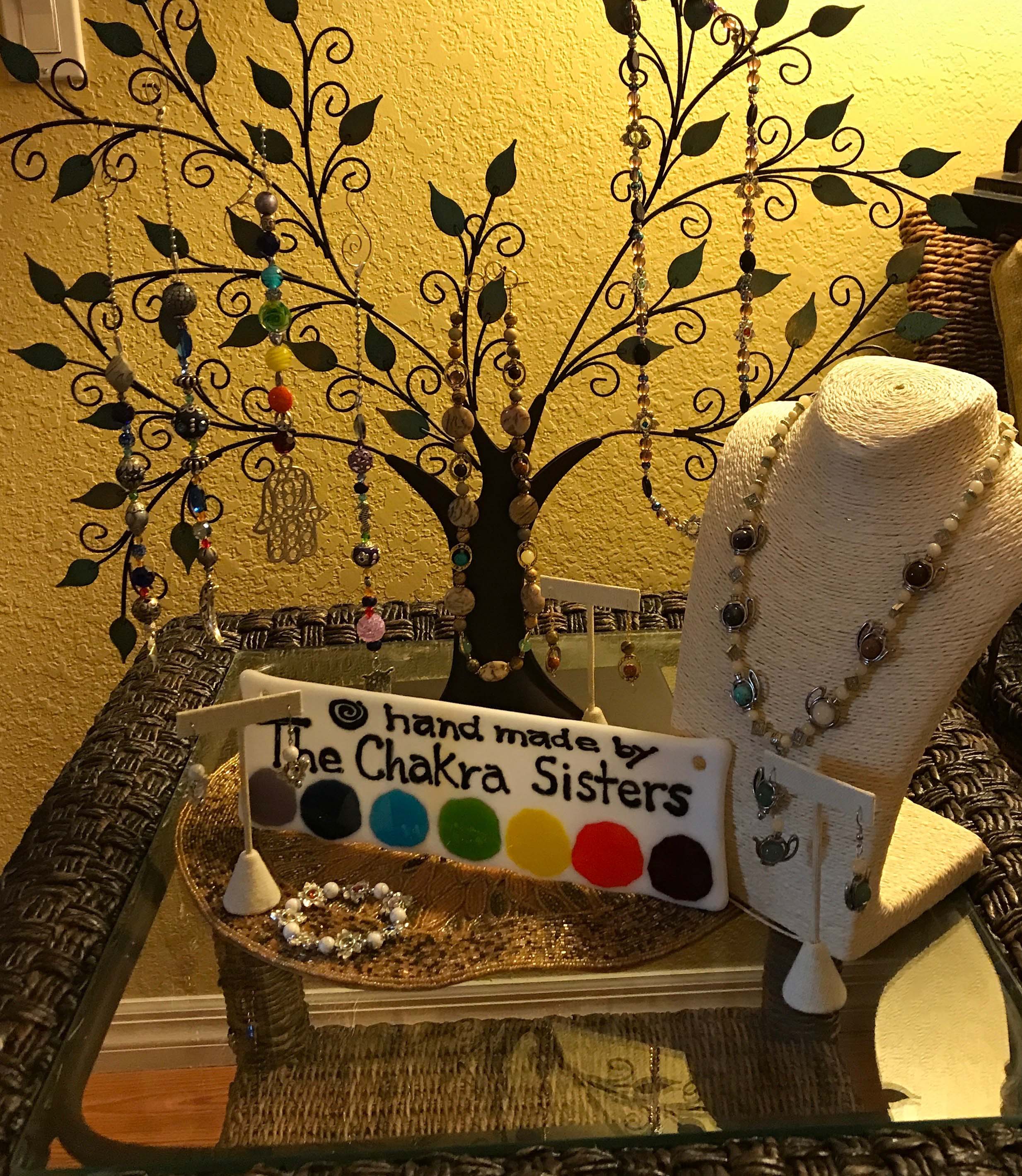 We are “The Chakra Sisters” and sisters we are. Both of us are retired teachers and artists. Patti was a middle school art teacher in Connecticut for 38 years and Sue was a 4th and 5th grade teacher in Florida for 30 years. For the past 25 years we have been creating original beaded art together and individually. The large majority of our jewelry pieces use one or more of the seven chakra colors. Each color is associated with a different part of the body, mind and spirit. Our chakra inspiration developed from three experiences in our family. First, our brother Stephen studied and traveled in India with Guru Maya for four years. Then Patti was treated with color therapy in order to stay strong and positive during her breast cancer treatments and finally Sue used the positive energy of color to help her through some digestive issues. These combined experiences and successes demonstrated to us that the chakra colors could be used in our designs to remind those who wear them to live more consciously and to focus their attention on the energy centers in their bodies. It is our hope that our jewelry will bring positive energy into the lives of those who wear it.